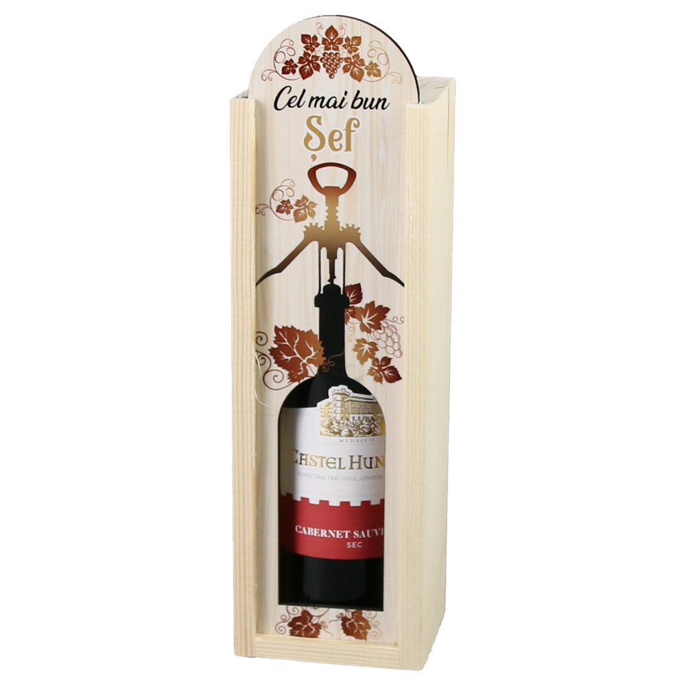 Cutie din lemn cu sticla de vin 187 ml „Cel mai bun Sef” 7 x 24 cm