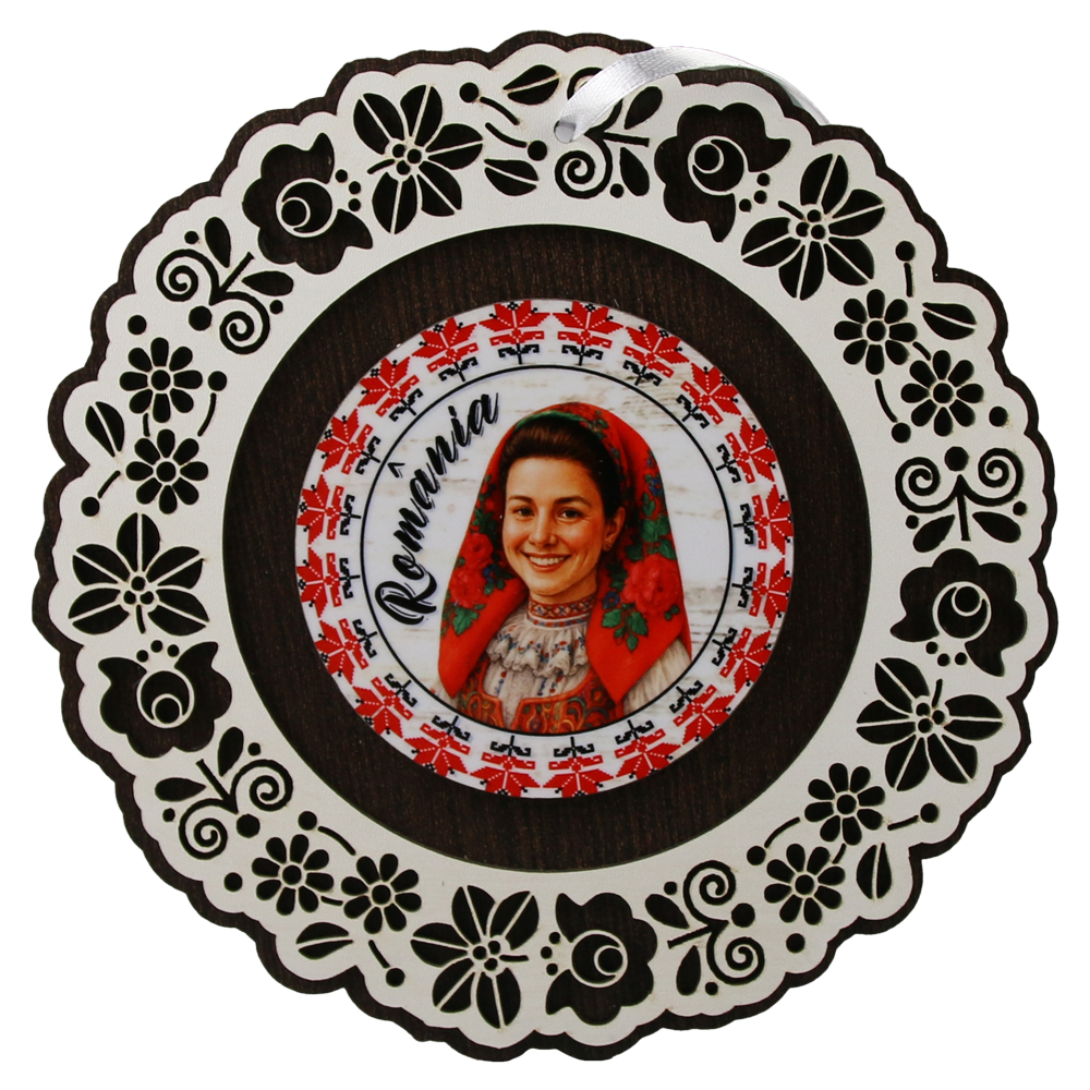Decoratiune de perete din lemn 18.5 cm „Romania” – Tarancuta cu batic