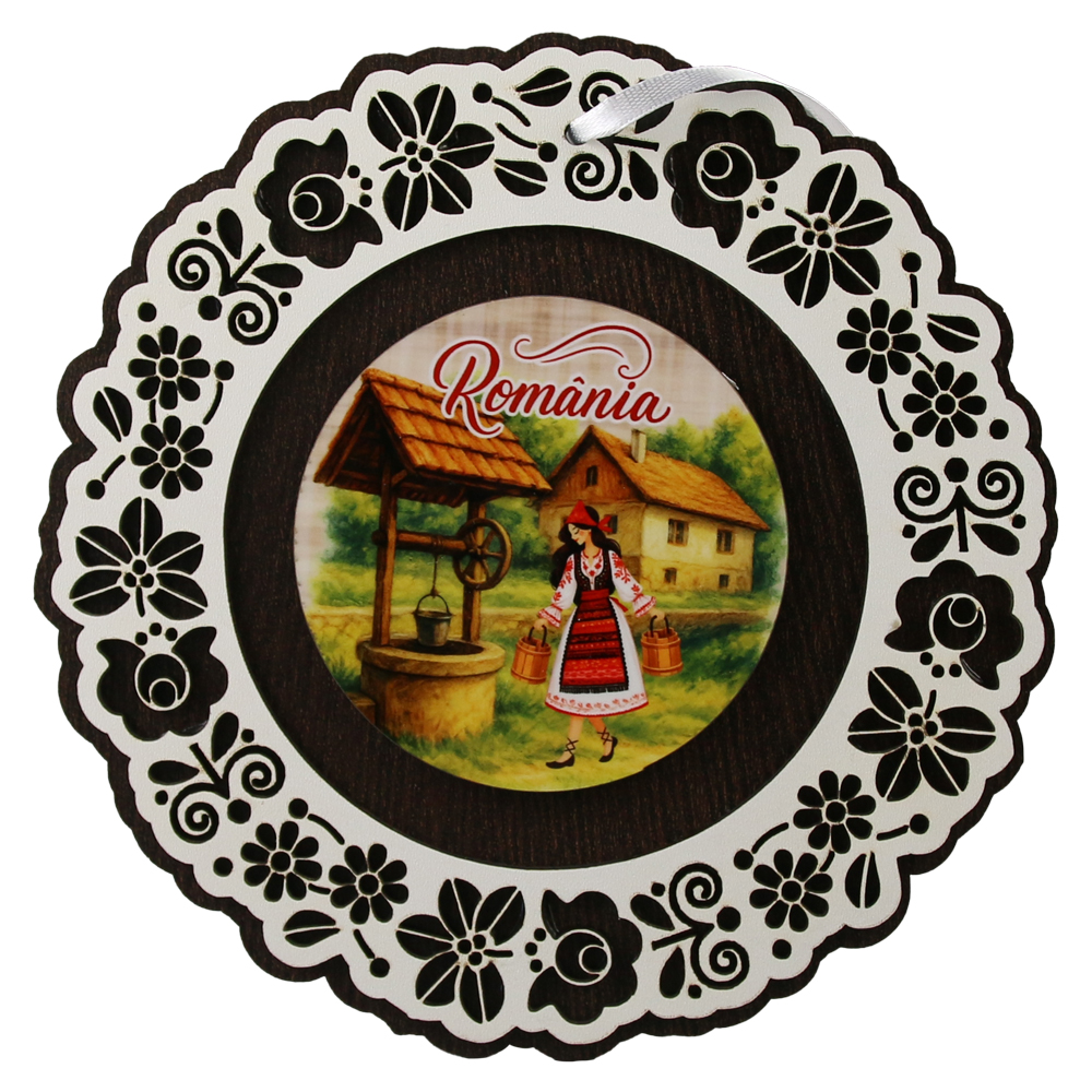Decoratiune de perete din lemn 18.5 cm „Romania” – Tarancuta la fantana