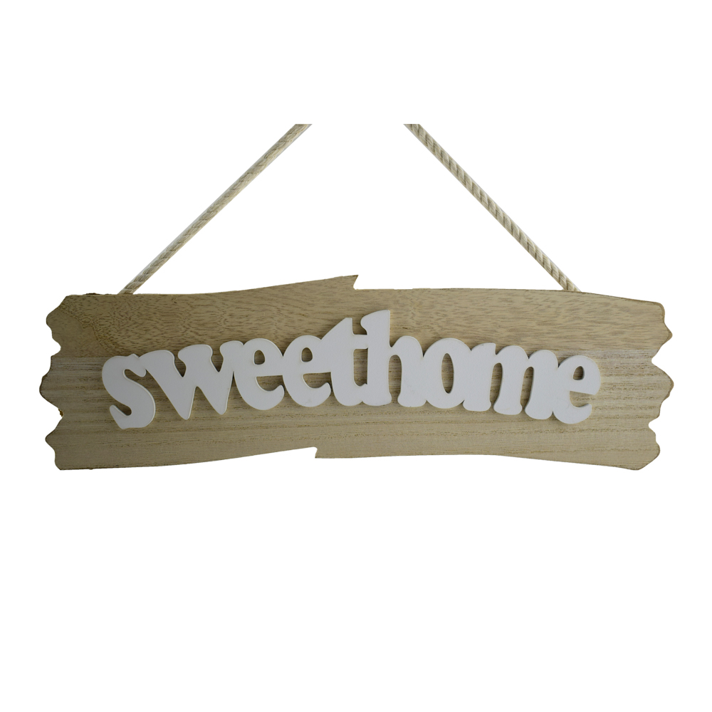 Respectiva decoratiune sub forma unei placute este realizata din lemn. are un design cu inscriptia „Welcome/Sweet Home”. ideala pentru a fi agatata pe usa. potrivita pentru a completa decoratiunea interiorului. Deasmenea. poate fi un cadou perfect oferit