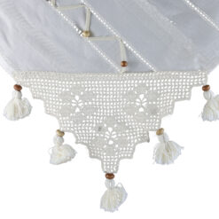 Fata de masa din bumbac 90×90 CM, cu dantela, franjuri si margele din lemn