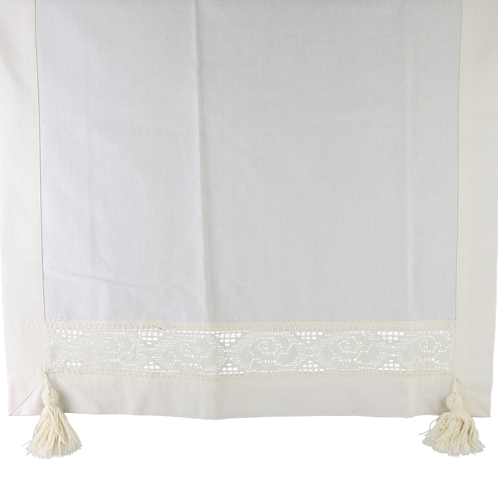 Fata de masa tip runner din bumbac 50 x 180 CM, cu dantela trandafir si franjuri