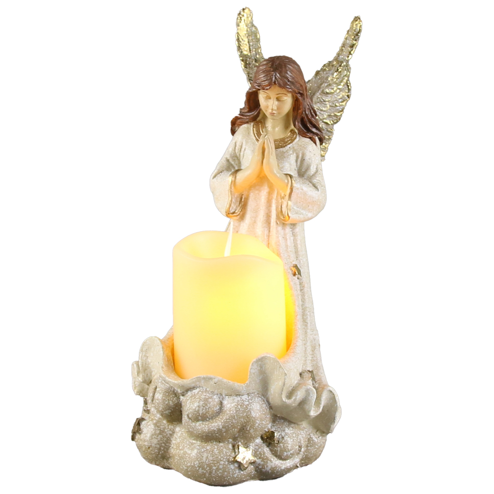 Figurina Ingeras cu candela 10×20 CM, Auriu