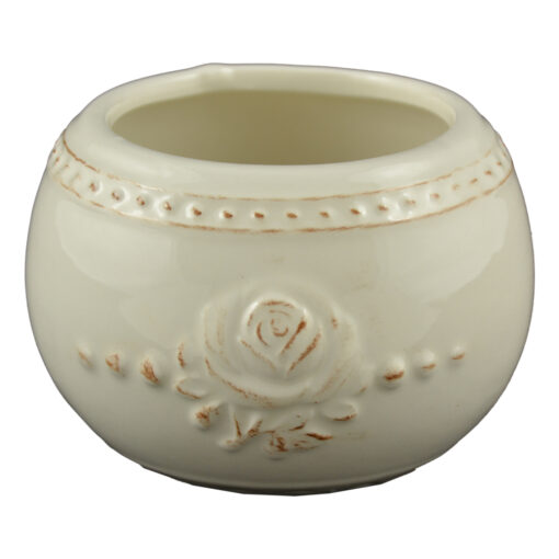 Un ghiveci este un accesoriu nelipsit din casa si gradina. pentru a fii decorata cu flori vii. Acest ghiveci este realizat din ceramica avand un design cu trandafir. lucrat manual. ideal atat in casa cat si pe terasa sau in gradina pentru a crea o atmosfe