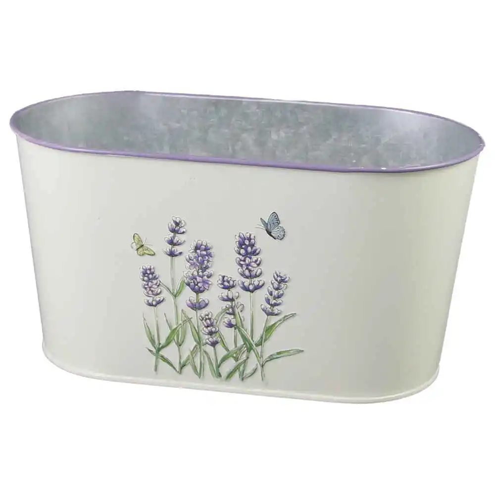 Ghiveci oval din metal 23×12 CM, Lavanda & Fluturi