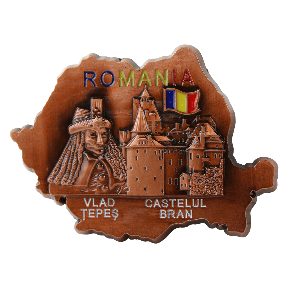 Magnet de frigider metalic 9 x 6 cm, Romania/Castelul Bran, Harta
