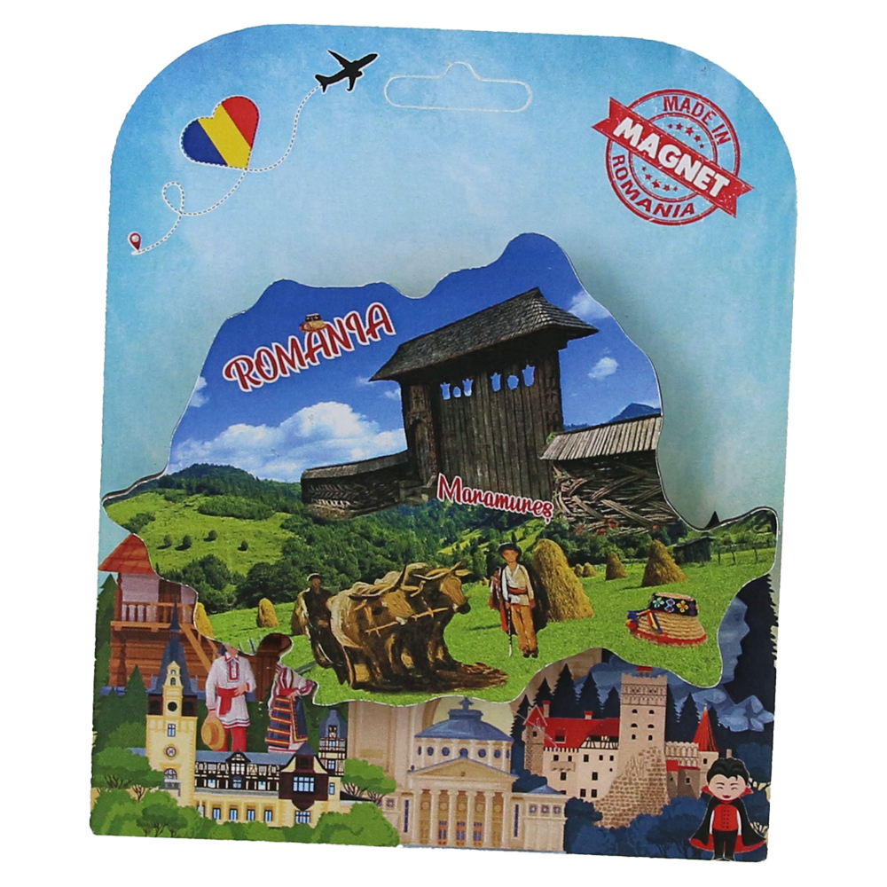 Magnet decorativ Harta Romaniei din lemn 10×7 CM, Maramures