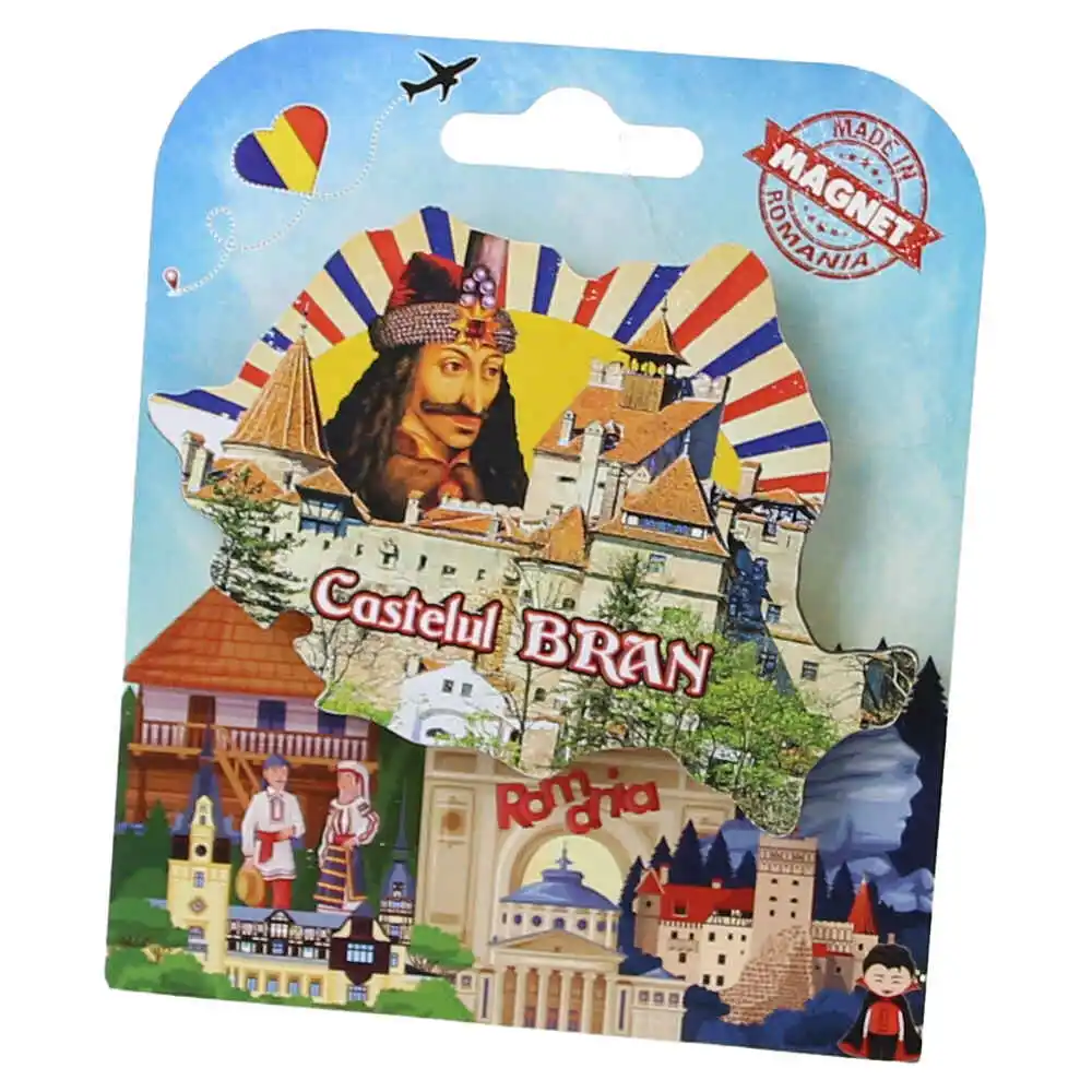 Magnet decorativ Harta Romaniei din lemn 9×6.5 CM, Castelul Bran