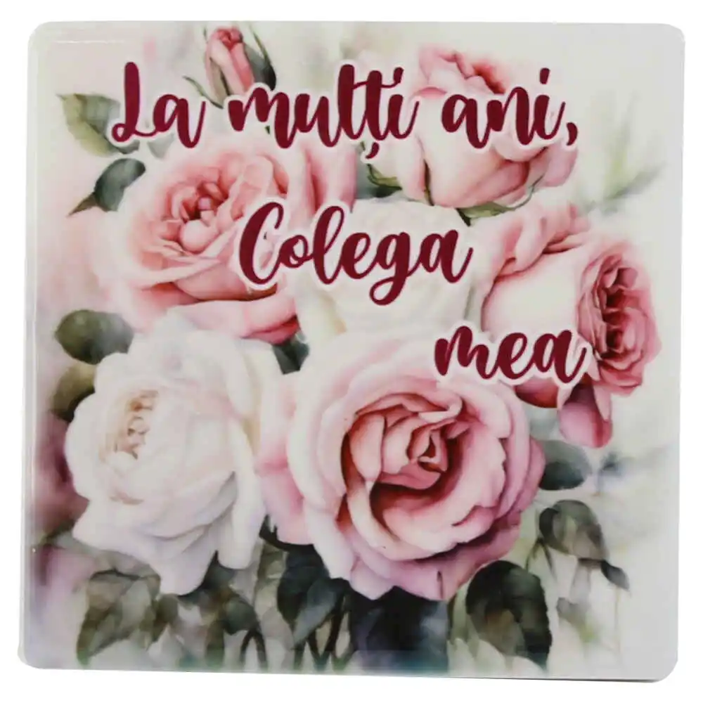 Magnet din ceramica „La multi ani, Colega mea!”, 7.5×7.5 CM, trandafiri