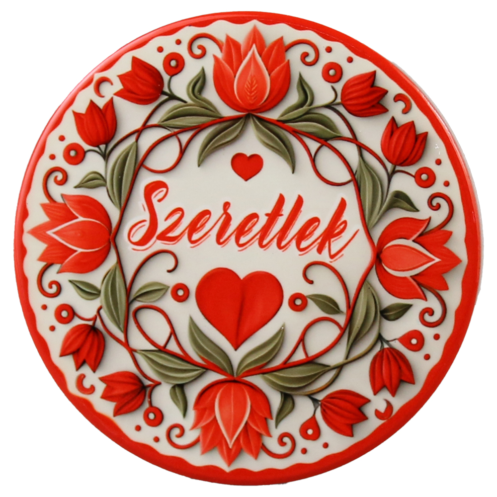 Magnet frigider ceramica „Szeretlek” 8 cm, cu flori