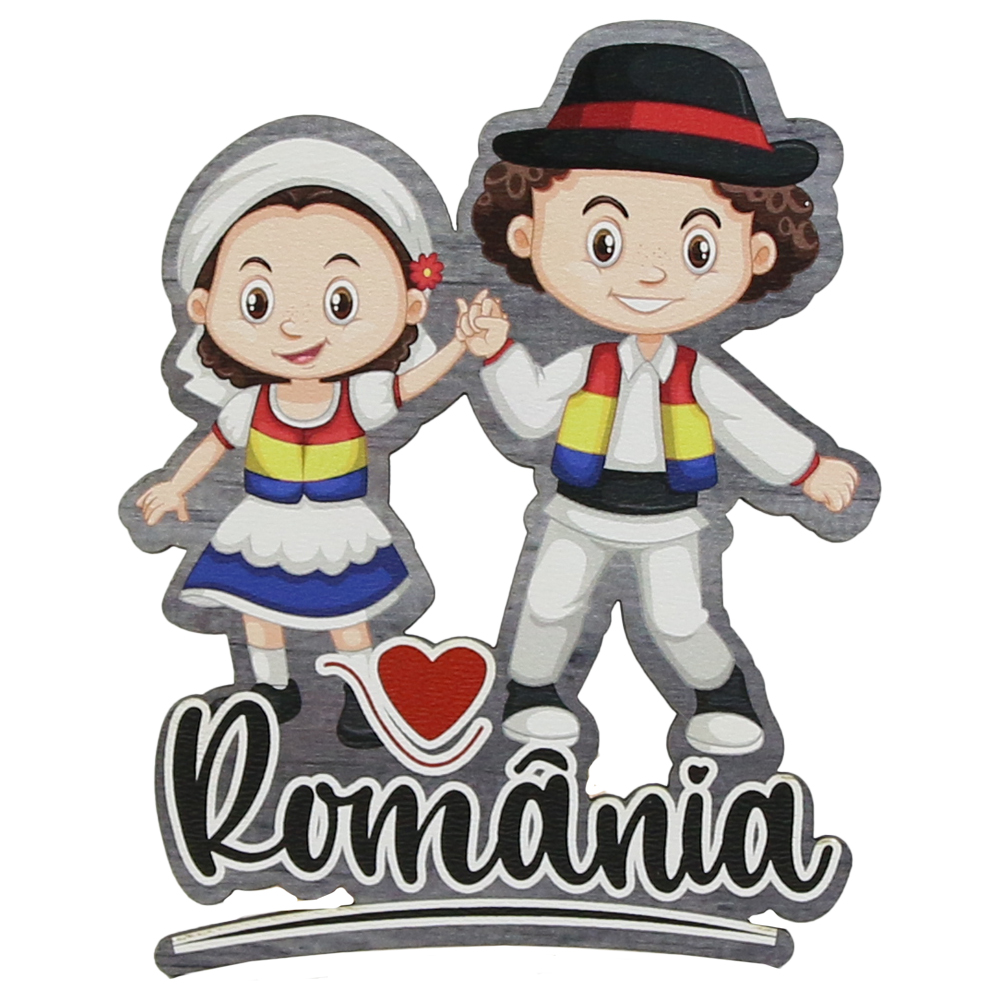 Magnet frigider din lemn, 7×9 CM, Romania, Copii in port popular