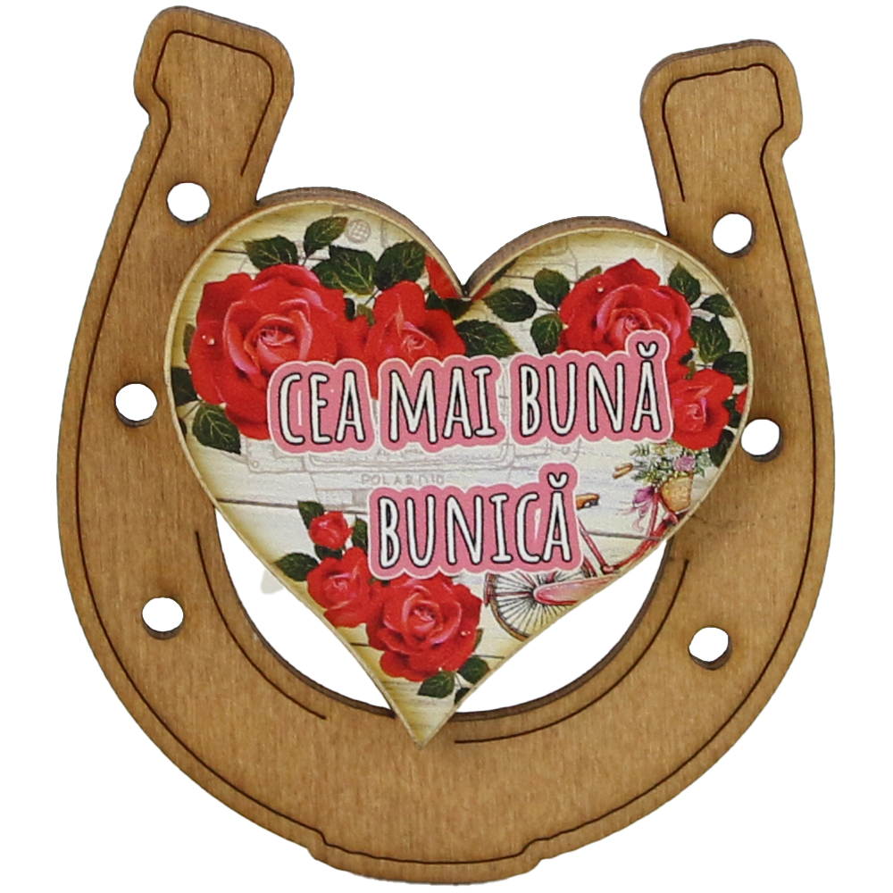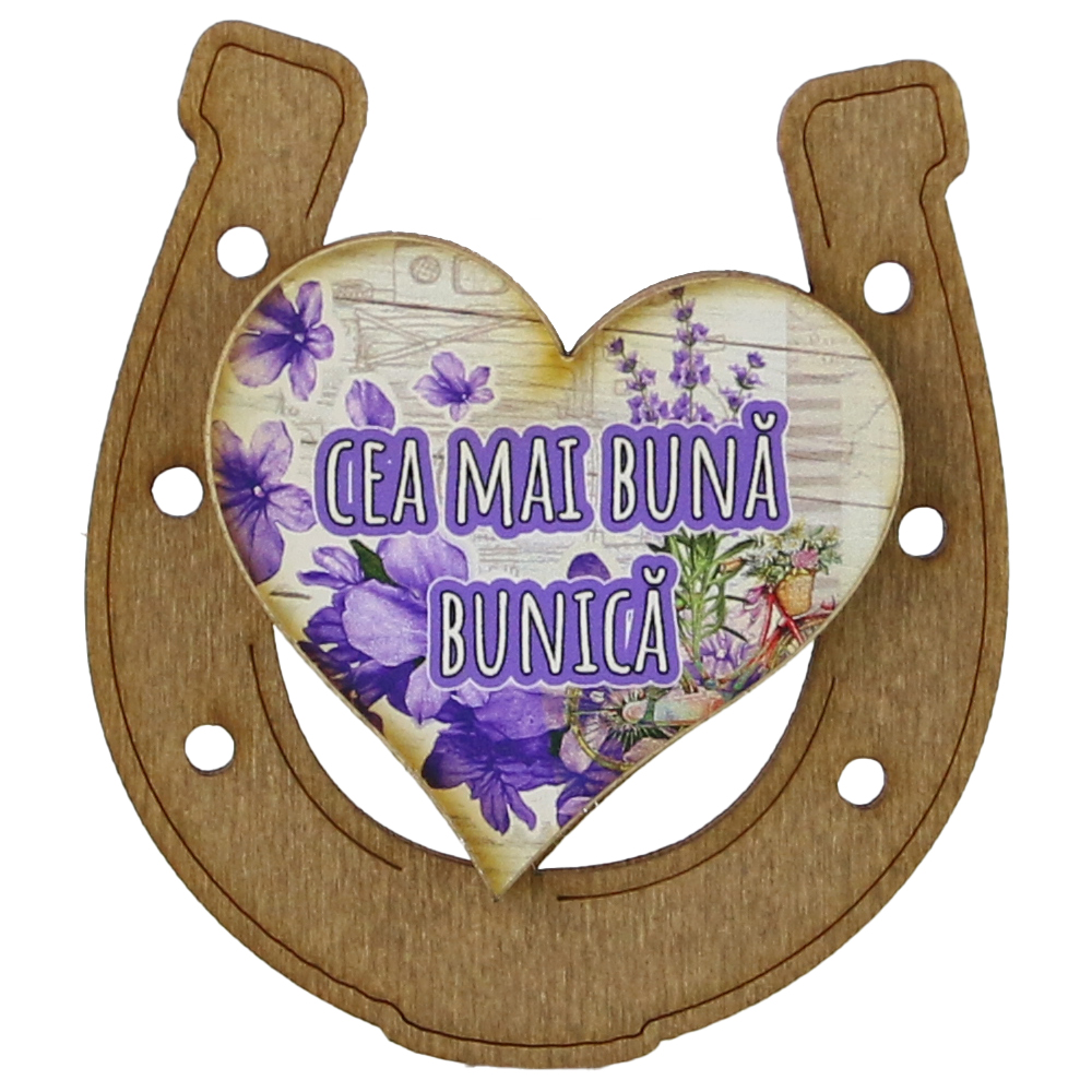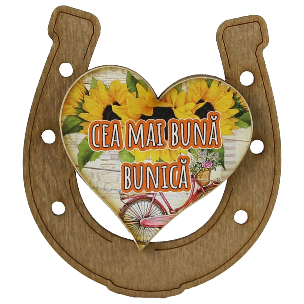 Magnet frigider din lemn „Cea mai buna Bunica” 7×8 CM, Potcoava