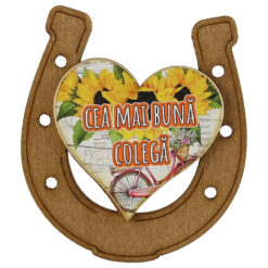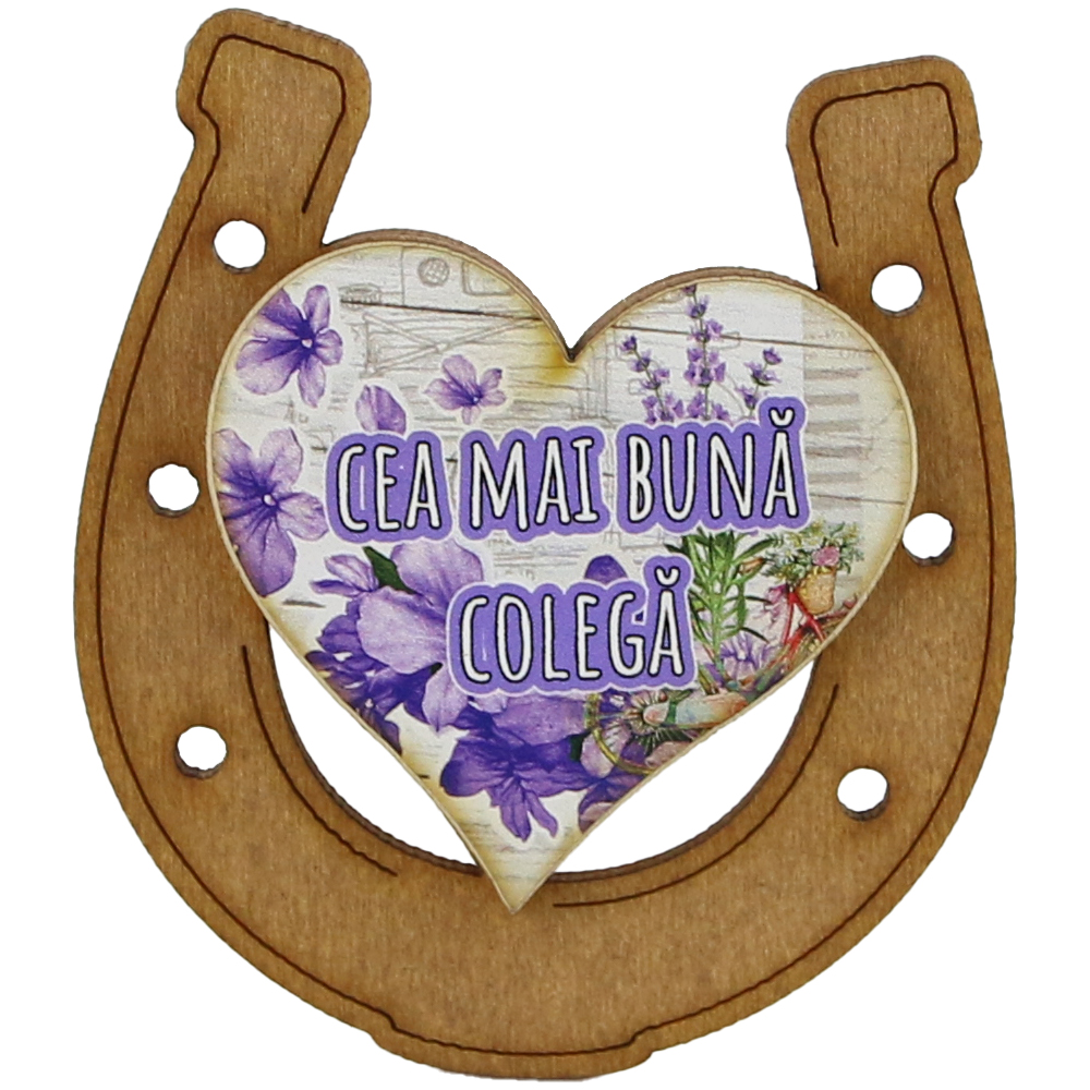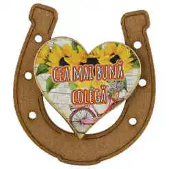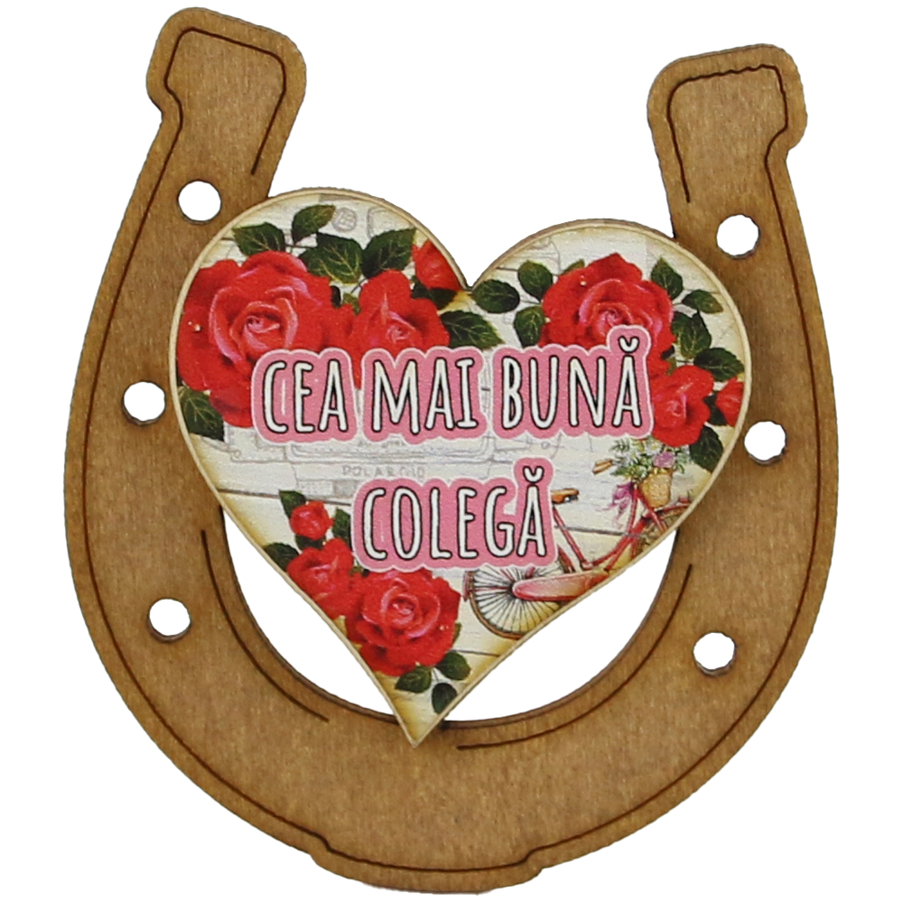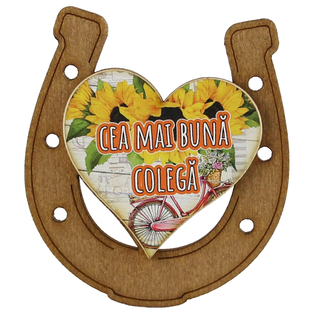 Magnet frigider din lemn „Cea mai buna Colega” 7×8 CM, Potcoava