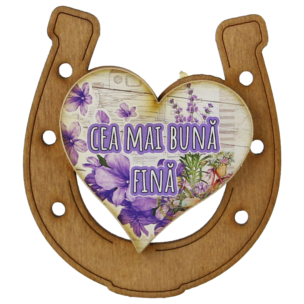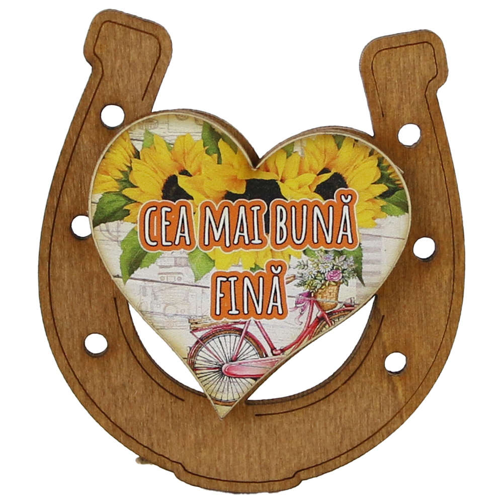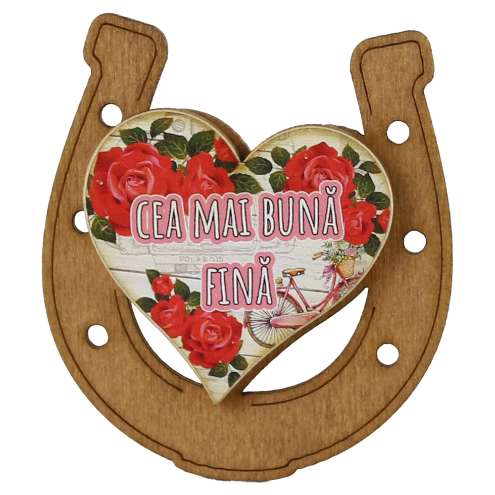 Magnet frigider din lemn „Cea mai buna Fina” 7×8 CM, Potcoava