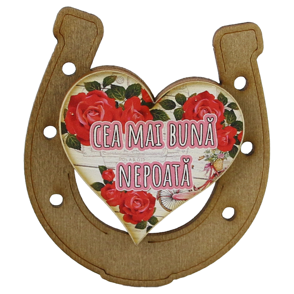 Magnet frigider din lemn „Cea mai buna Nepoata” 7×8 CM, Potcoava