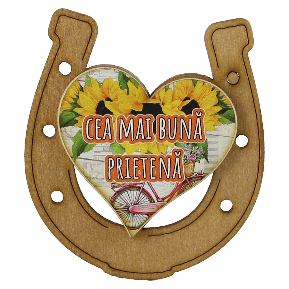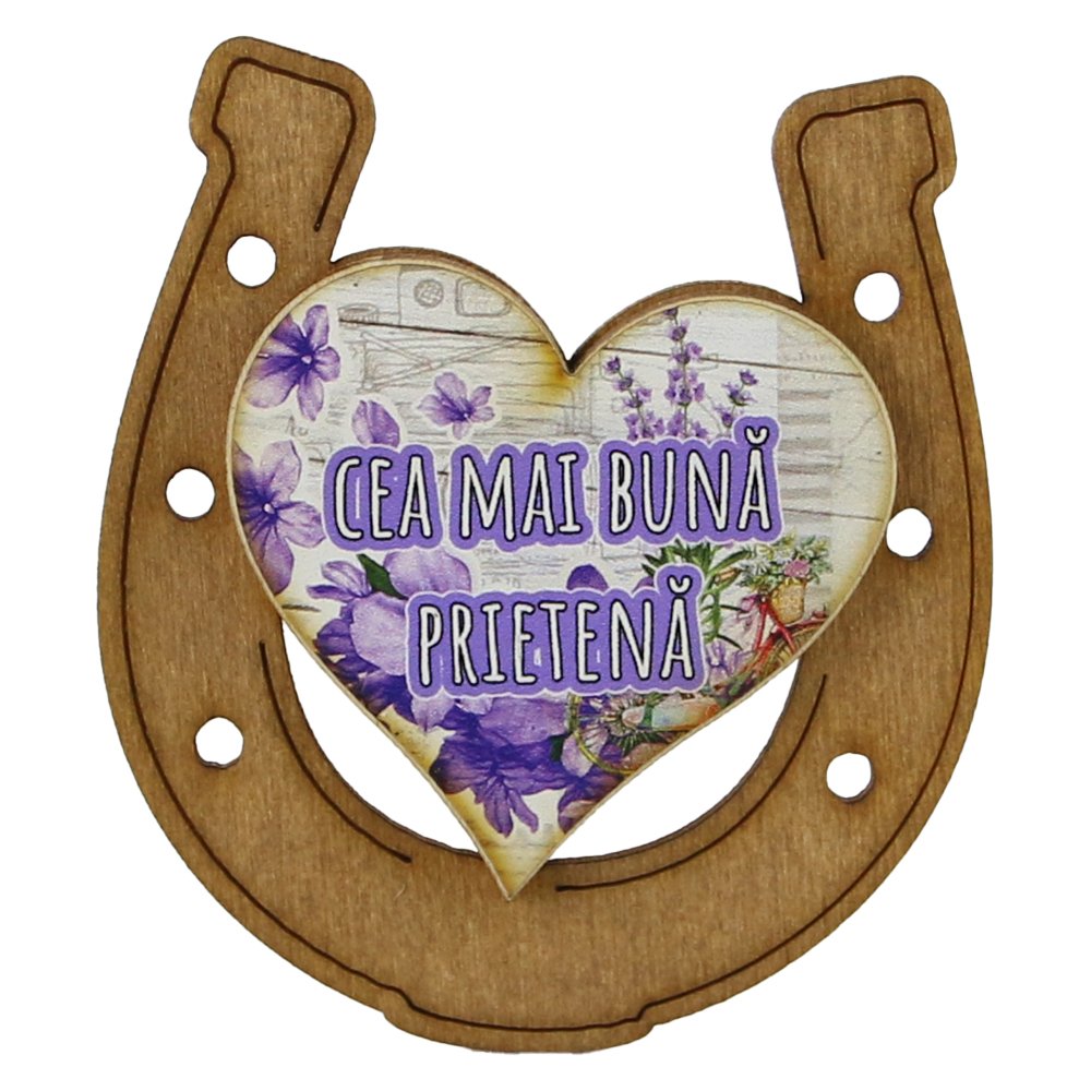 Magnet frigider din lemn „Cea mai buna Prietena” 7×8 CM, Potcoava
