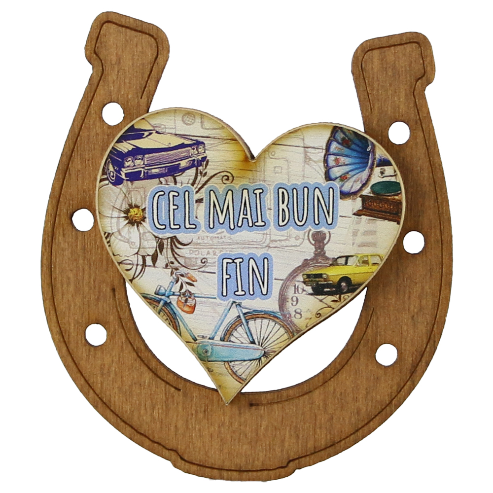 Magnet frigider din lemn „Cel mai bun Fin” 7×8 CM, Potcoava