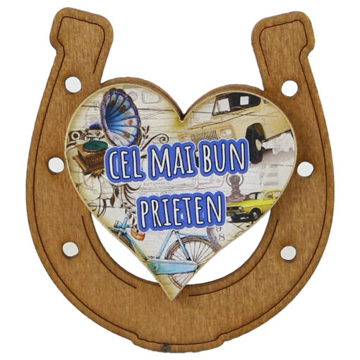 Magnet frigider din lemn „Cel mai bun Prieten” 7×8 CM, Potcoava