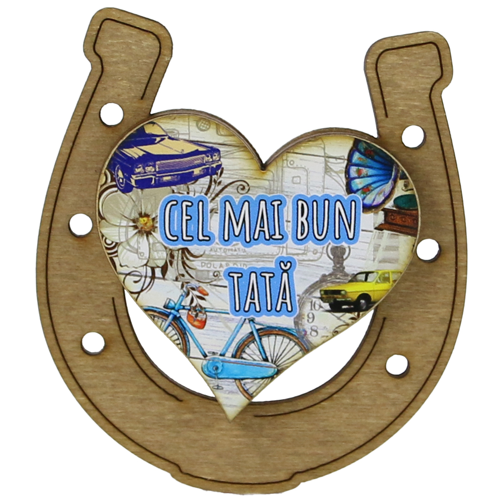 Magnet frigider din lemn „Cel mai bun Tata” 7×8 CM, Potcoava