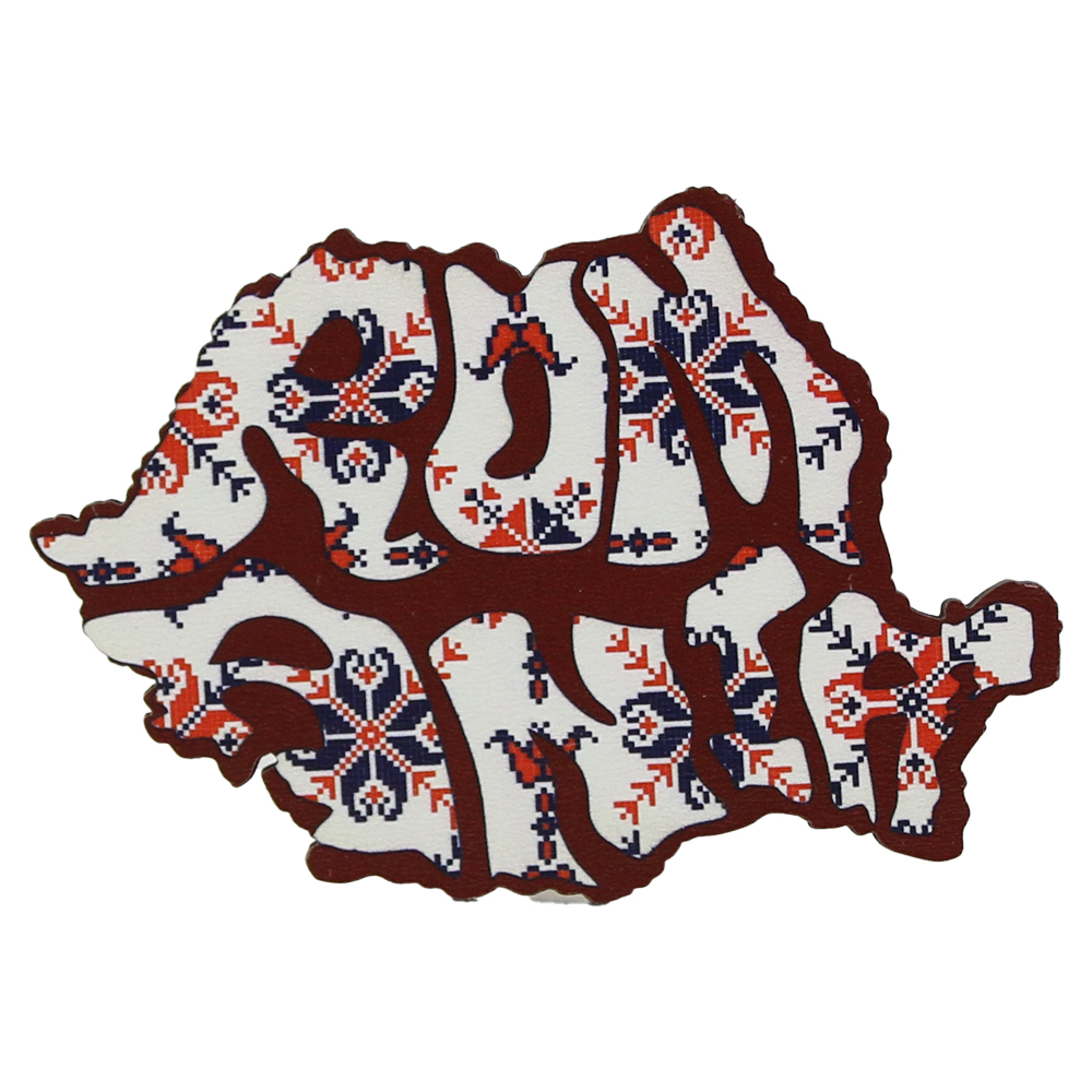 Magnet frigider din lemn, Harta Romaniei, 9×6 CM, Motive traditionale