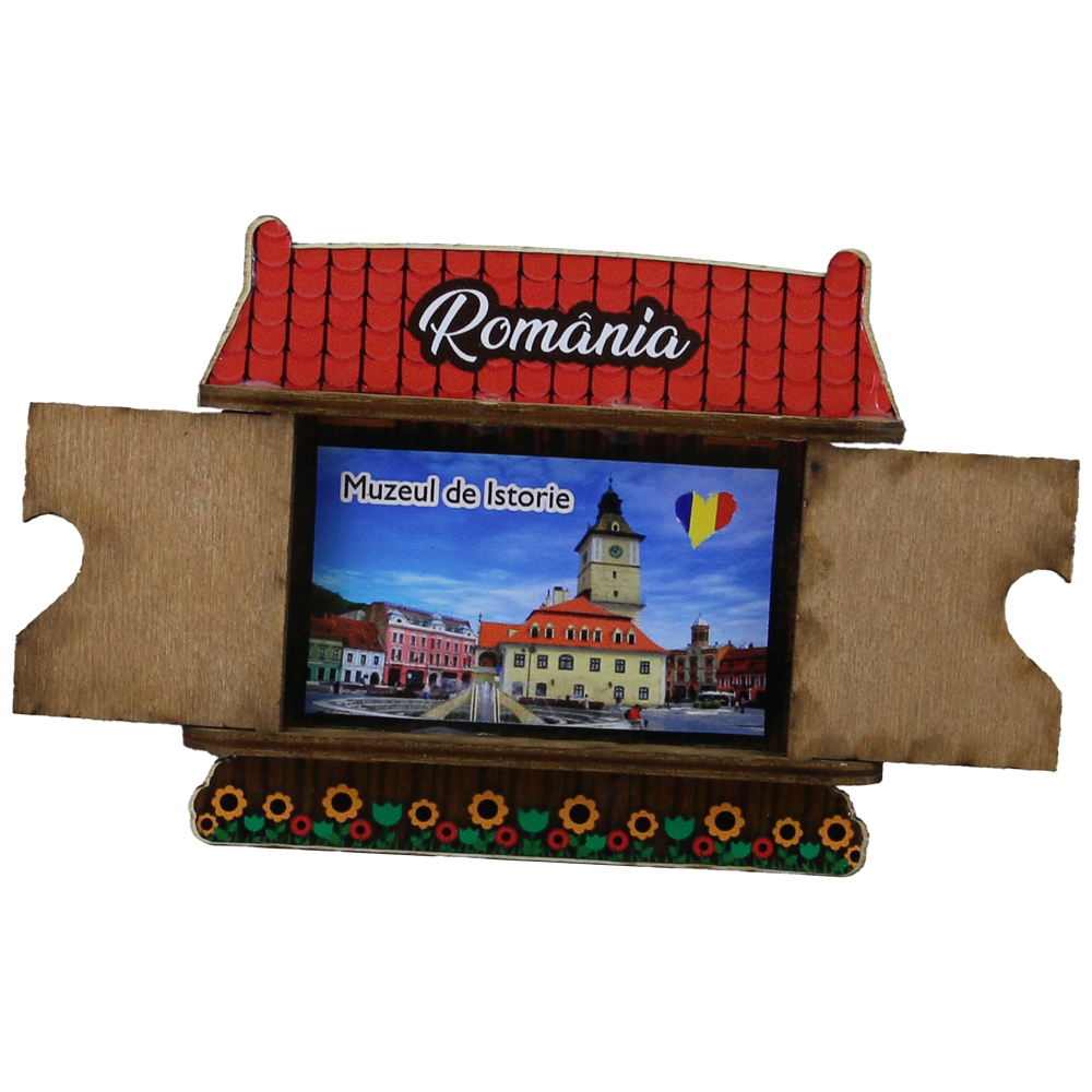 Magnet frigider din lemn „I love Brasov” 9/13.5×10 CM, Casuta