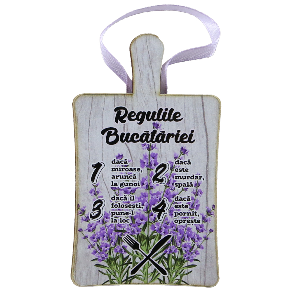 Magnet frigider din lemn „Regulile Bucatariei” 6×10 CM, Lavanda