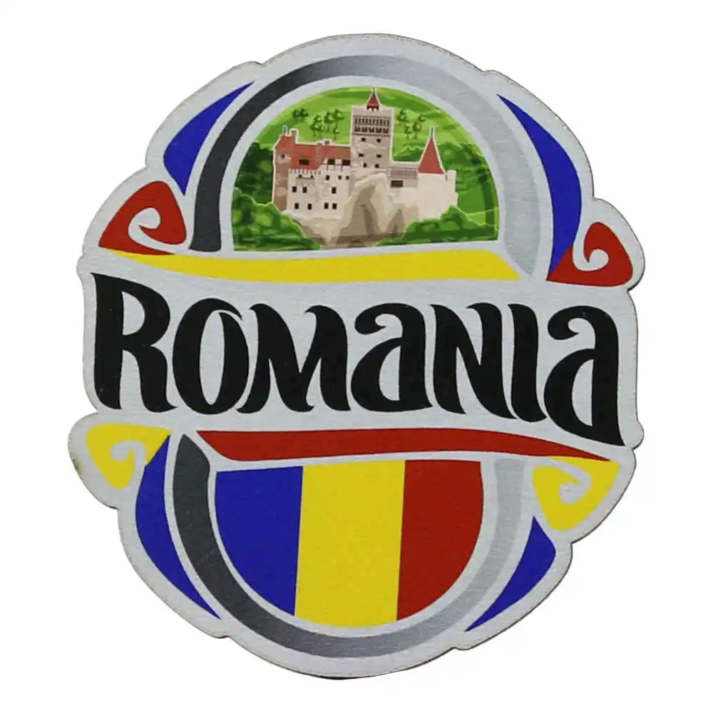 Magnet frigider din lemn „Romania” 6.5×7 CM, Castelul Bran, tricolor