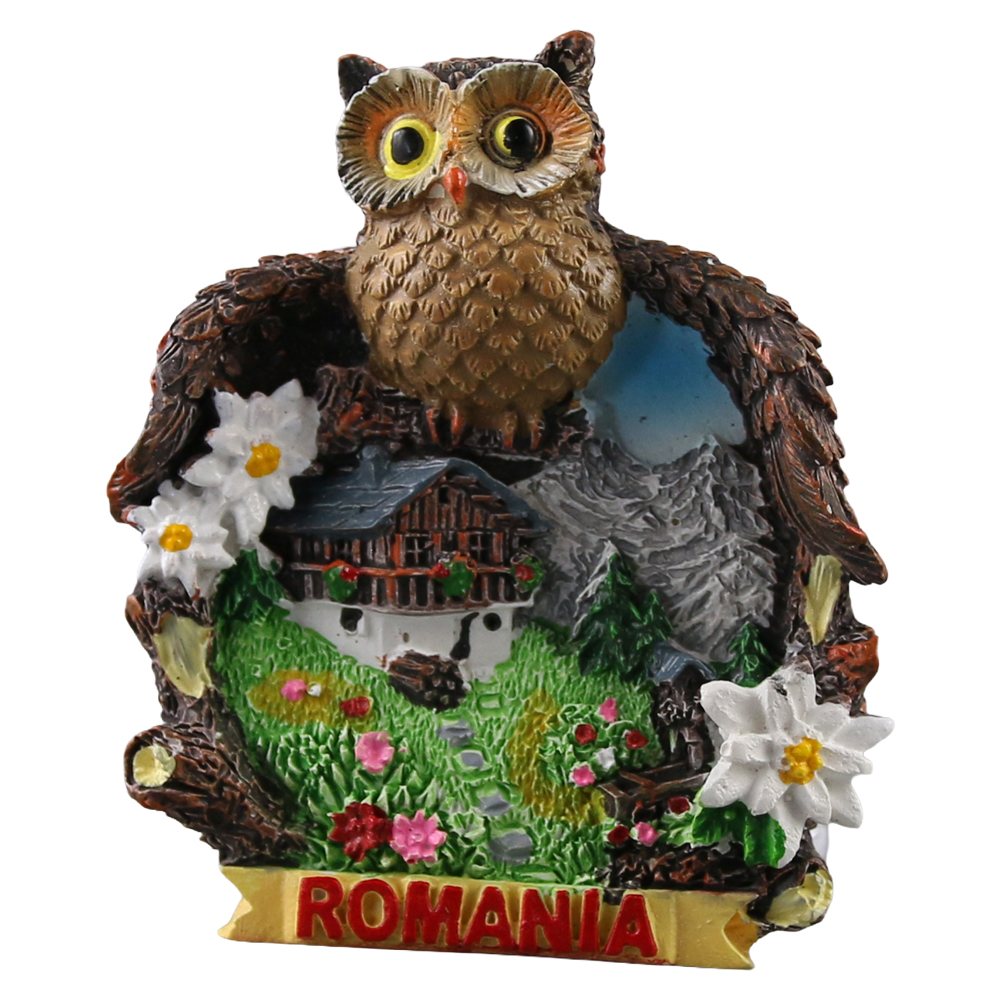 Magnet frigider din rasina „Romania” 6 x 7 cm, Bufnita