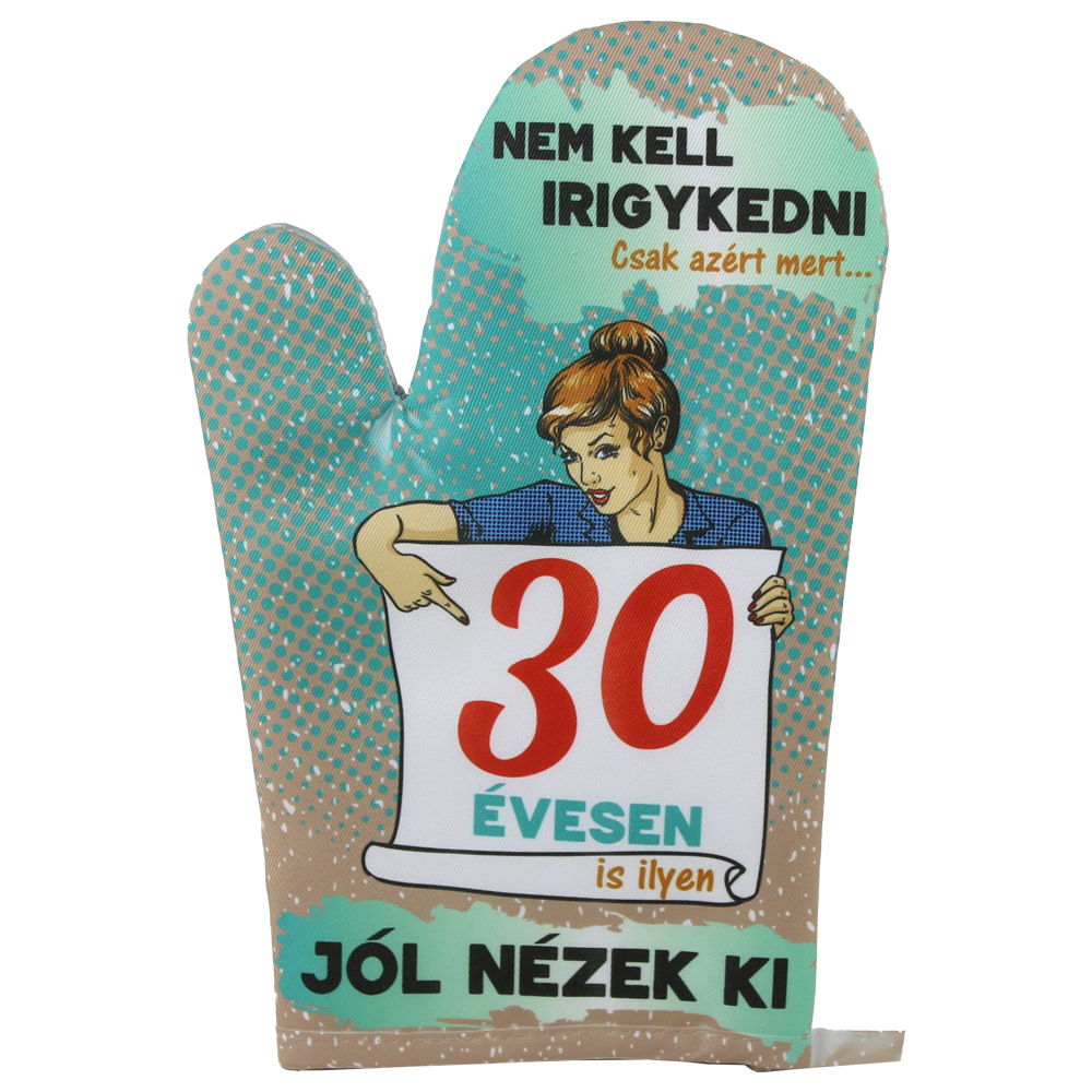 Manusa de bucatarie „30 Nem kell irigykedni…”, din textil, 27 CM