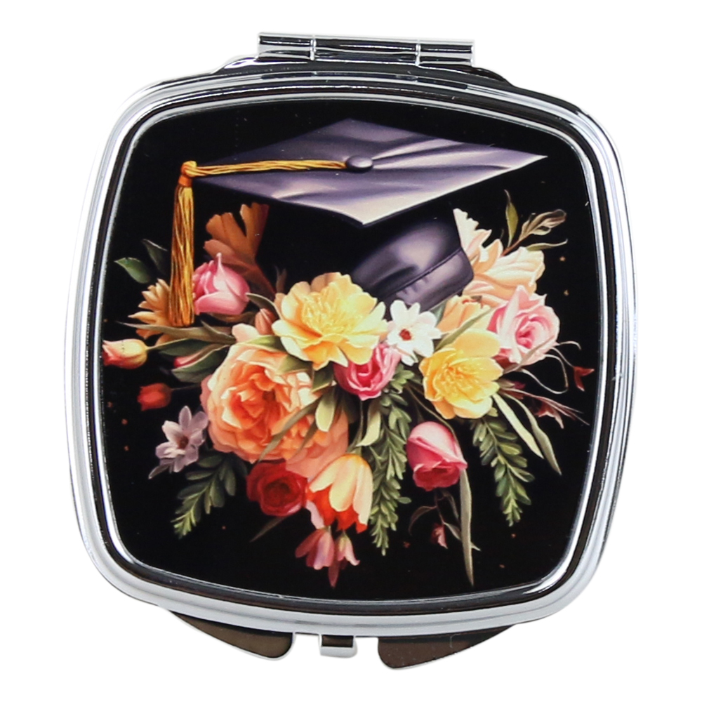 Oglinda de buzunar Absolvire 7 CM, Flori cu toca, negru