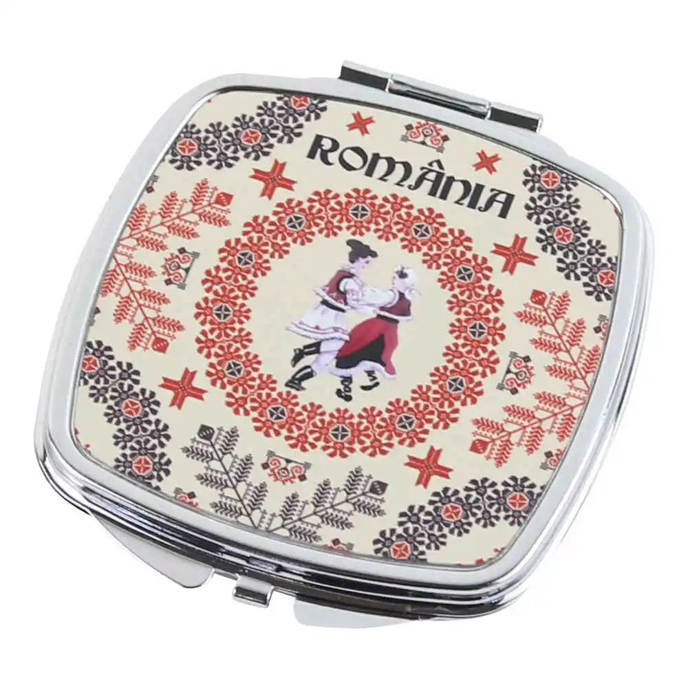 Oglinda de buzunar „Romania” 6.5 CM, cu motive populare