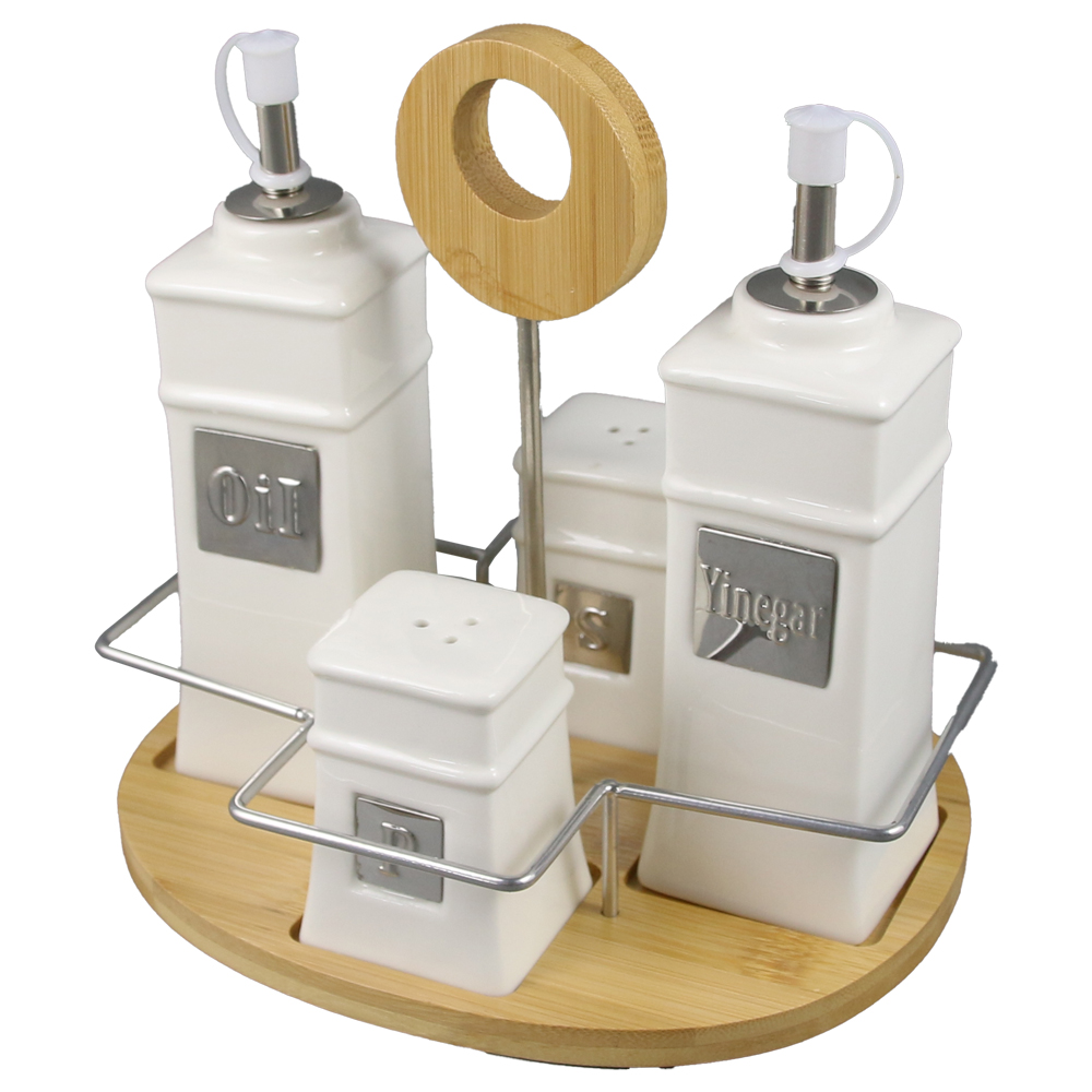 Oliviera din ceramica cu suport bambus, 5 piese, White