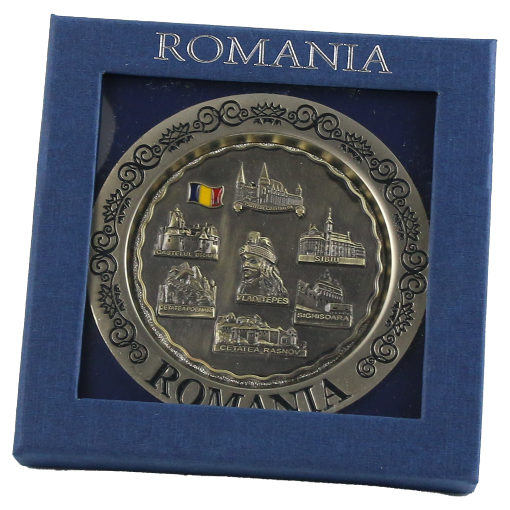 Ornament metalic cu suport Romania, 10.5 CM, in cutie , Castele