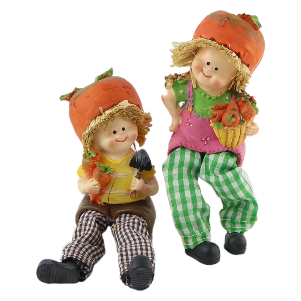 Pereche figurine Copii cu morcovi din rasina, cu picioare textil 20 CM