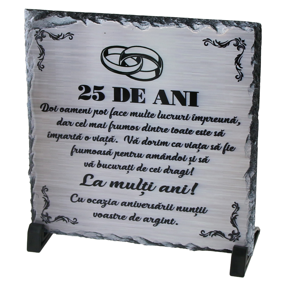 Placa ardezie „25 de ani” 19 x 19 cm, cu ocazia aniversarii nuntii de argint