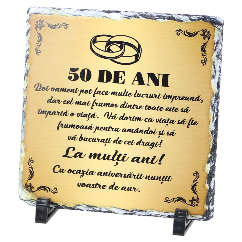 Placa ardezie „50 de ani” 19×19 CM, cu ocazia aniversarii nuntii de aur