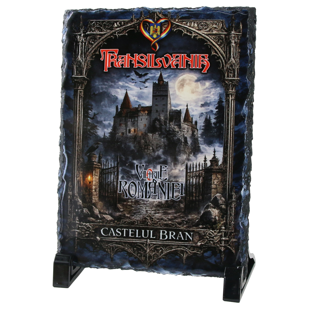 Placa ardezie „Castelul Bran – Valoriile Romaniei” 14 x 19 cm