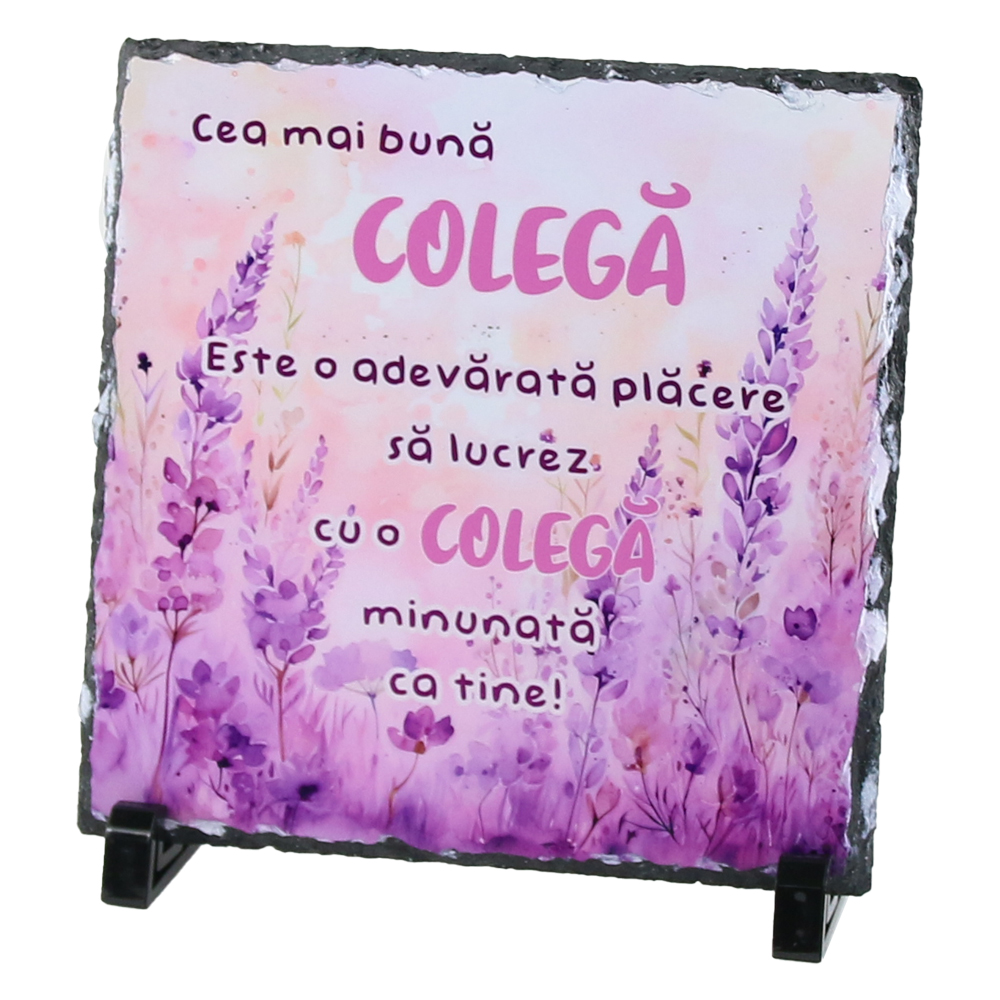 Placa ardezie „Cea mai buna Colega” 19×19 CM, Lavanda