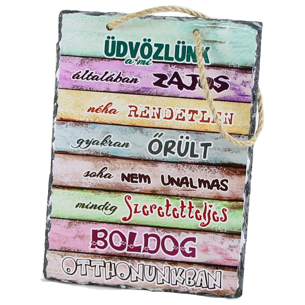 Placa ardezie de perete „Udvozlunk Otthonunkban…” 14×19 CM