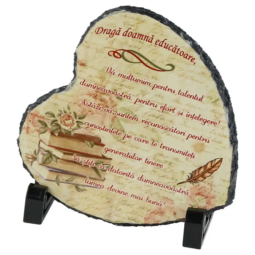 Placa ardezie „Draga doamna educatoare?” 14×14 CM, Inima