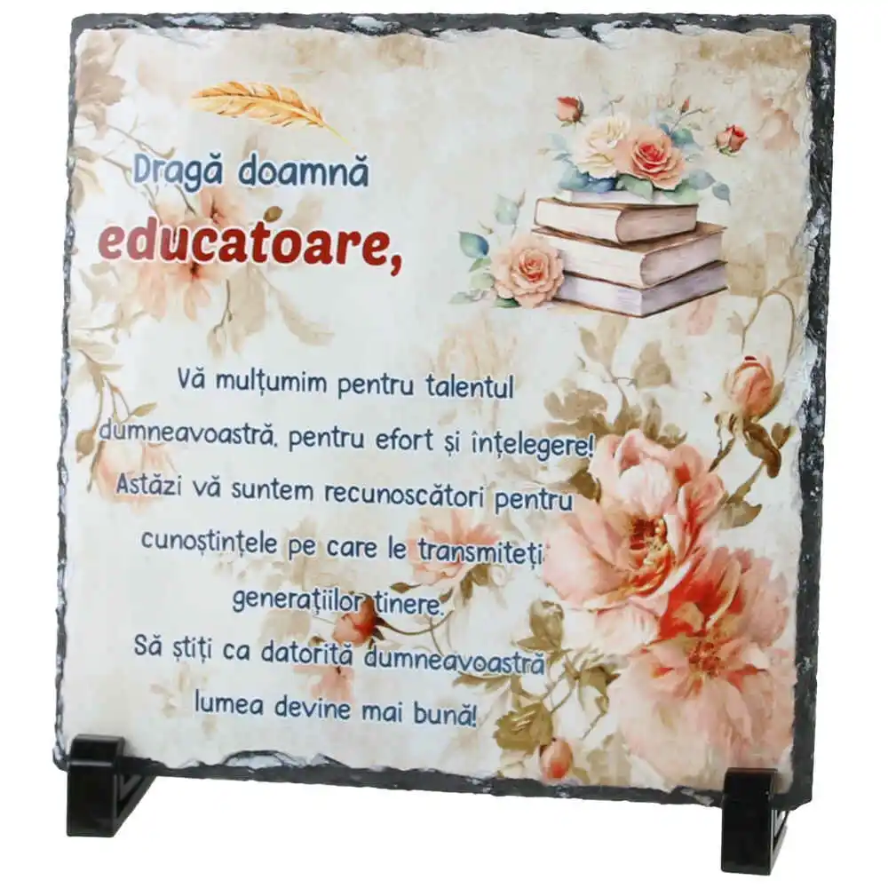 Placa ardezie „Draga Doamna Educatoare…” 19×19 CM