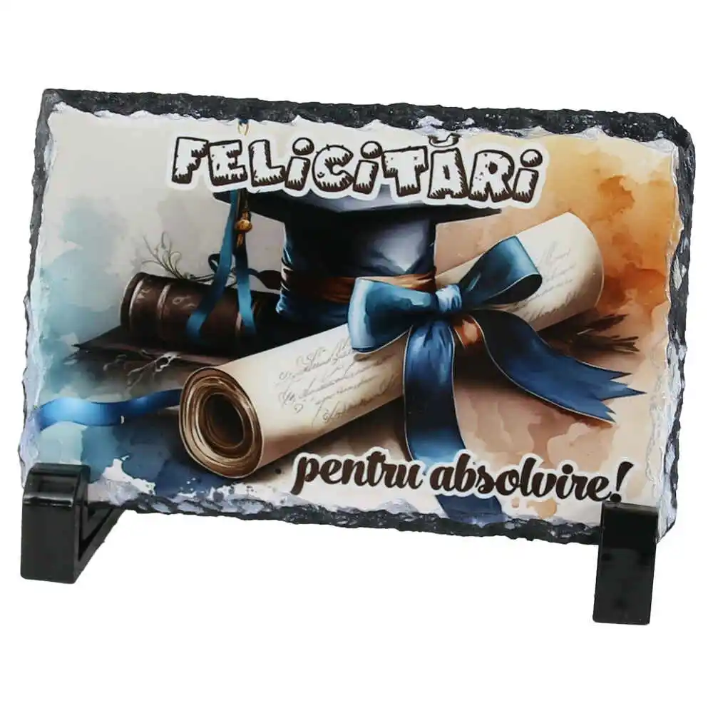 Placa ardezie „Felicitari pentru Absolvire” 14×9 CM, Toca absolvire, absolvire