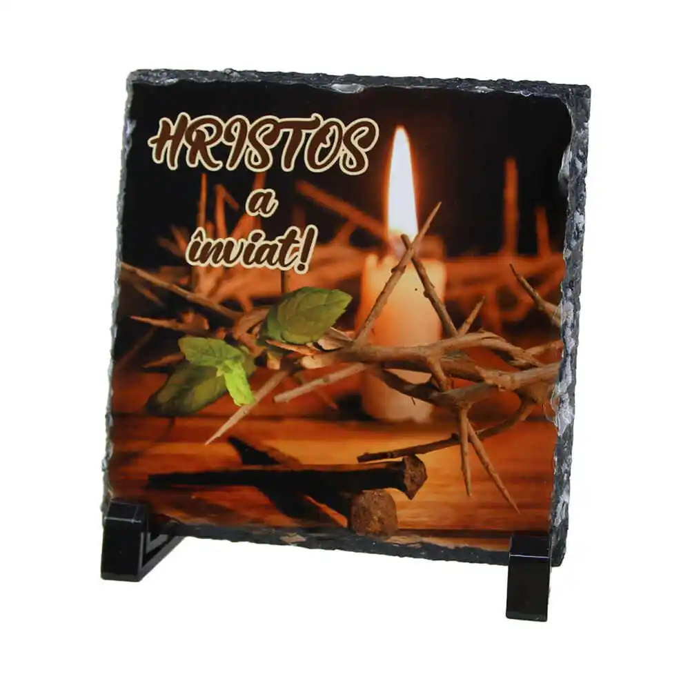 Placa ardezie „Hristos a Inviat”, 14×14 CM