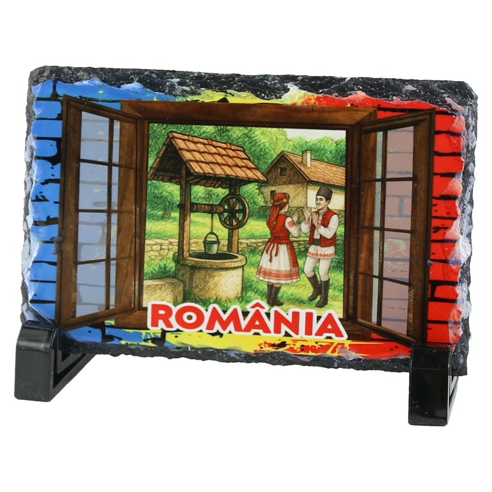 Placa ardezie „Romania”, 14×9 CM, Fereastra tricolor