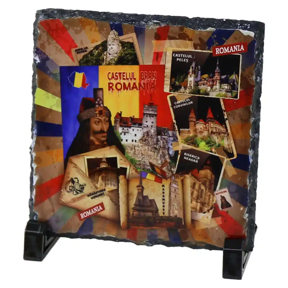 Placa ardezie „Romania/Castelul Bran”,1 4×14 CM