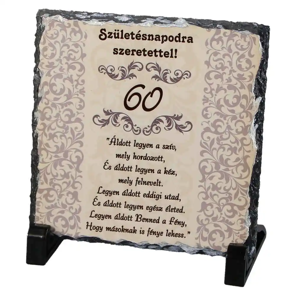 Placa ardezie „Szuletesnapodra szeretettel 60!” 14×14 CM