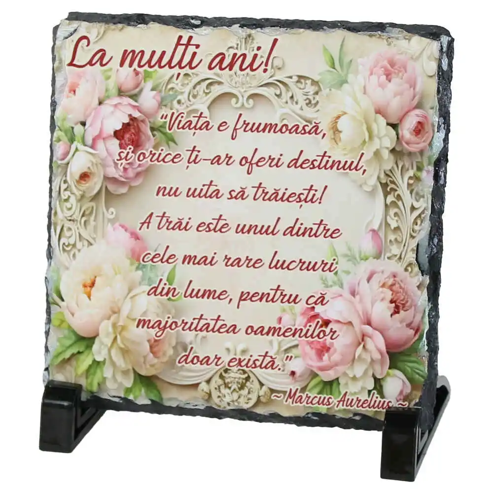 Placa ardezie „Viata e frumoasa…” 14×14 CM