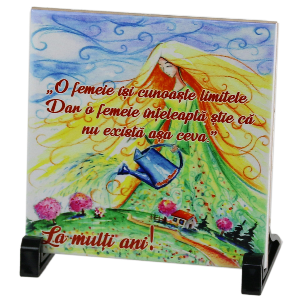 Placa decorativa „O femeie isi cunoaste limitele…”, 15×15 CM