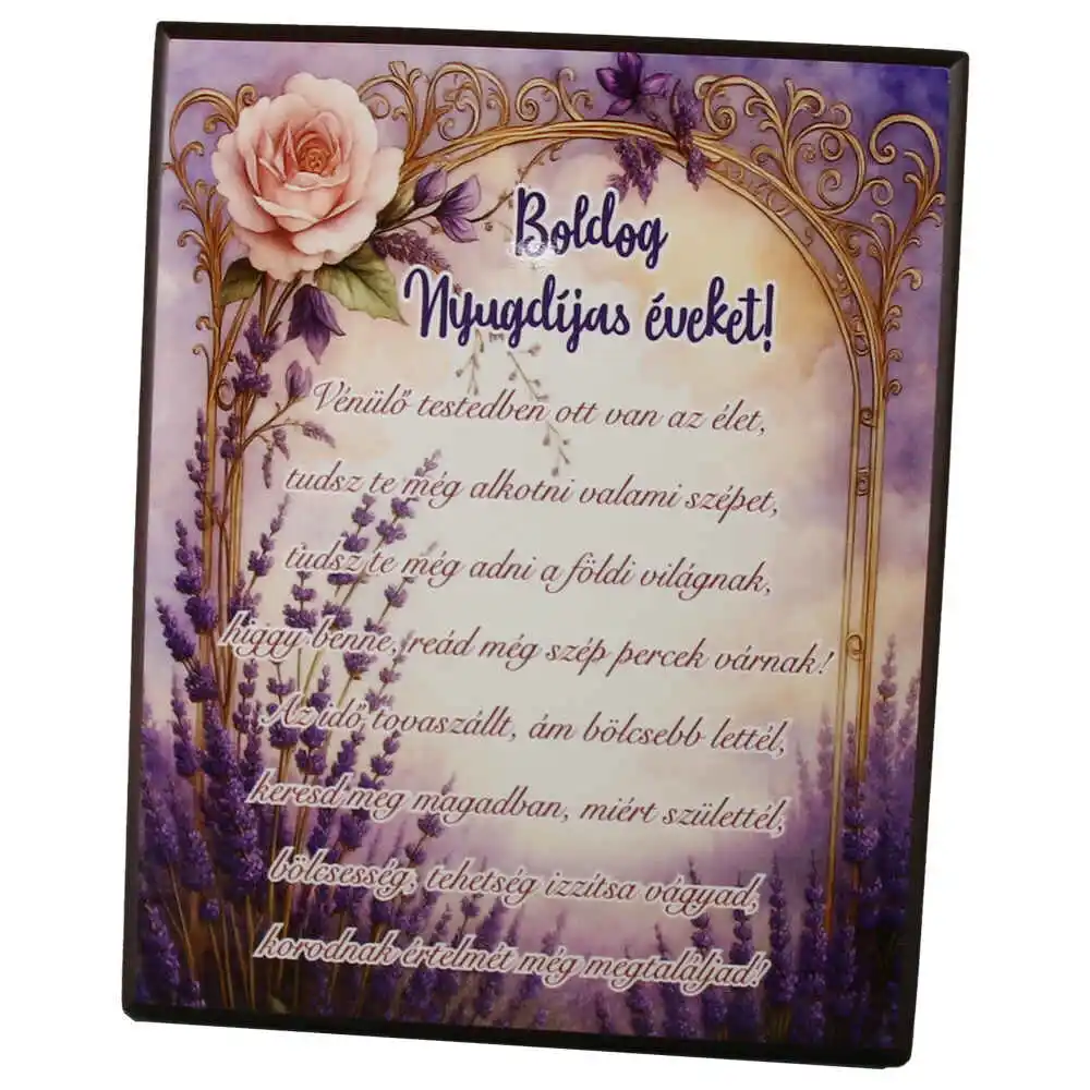 Placheta decorativa MDF „Boldog Nyugdijas eveket!…” 20 x 25 cm