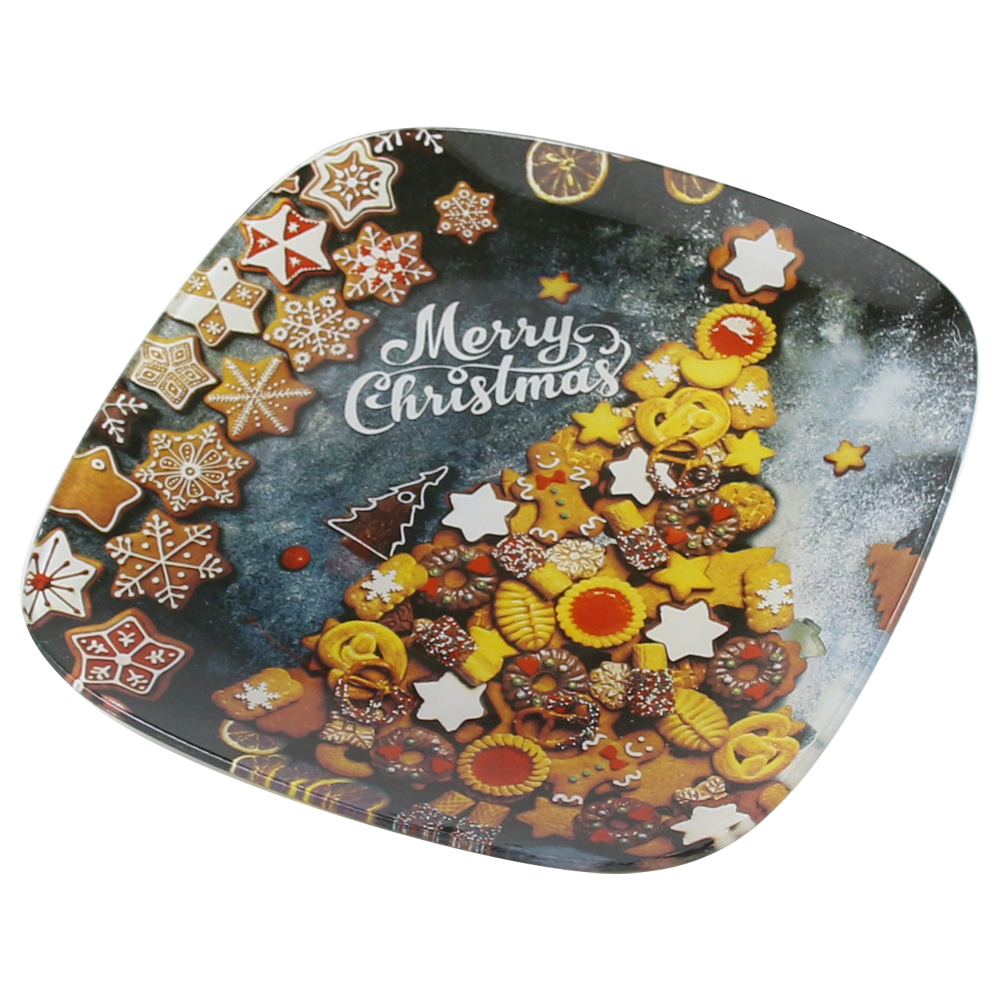 Platou din sticla „Merry Christmas”, 20×20 CM, Turta dulce